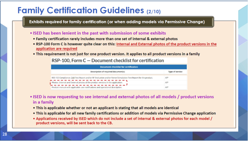 加拿大ISED在2022年10月24日至27日舉行的TCBC Workshop (The Telecommunication Certification Body Council Workshop) 中發布了對多型號產品申請認證的最新要求:多型號/多產品版本申請加拿大ISED認證時,要求每個申請的型號/產品版本都必須提供產品的內部和外部照片。